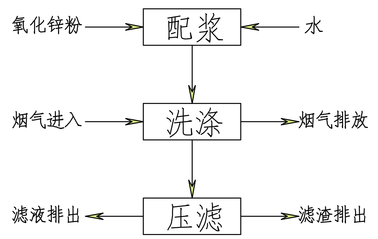 氧化鋅法脫硫工藝流程分為配漿、洗滌和壓濾三個過程。