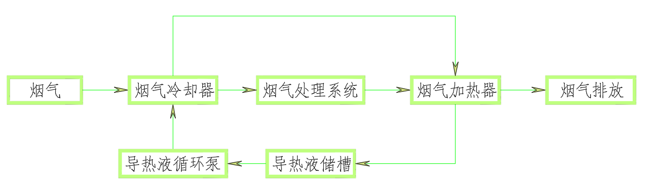 (3)在煙氣冷卻器和煙氣加熱器之間用導熱液來工作,把煙氣冷卻器的熱量移到煙氣加熱器加熱煙氣。導熱液包含水、脫鹽水、導熱油、酒精等可吸熱放熱的液體。
