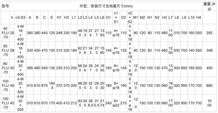 ◆從泵的進口來看,出口在泵中心左邊的泵有:40FLU-70,65FLU-70,80FLU-70,100FLU-70。