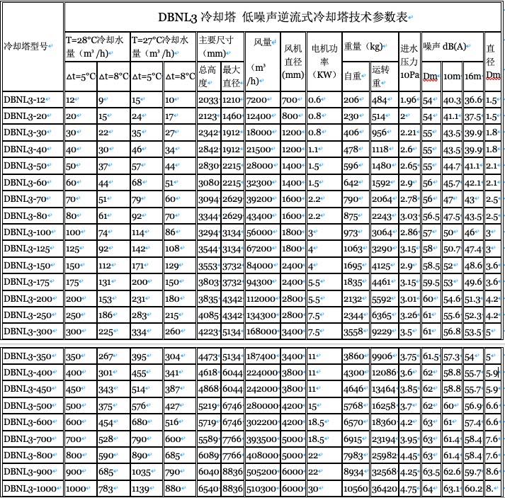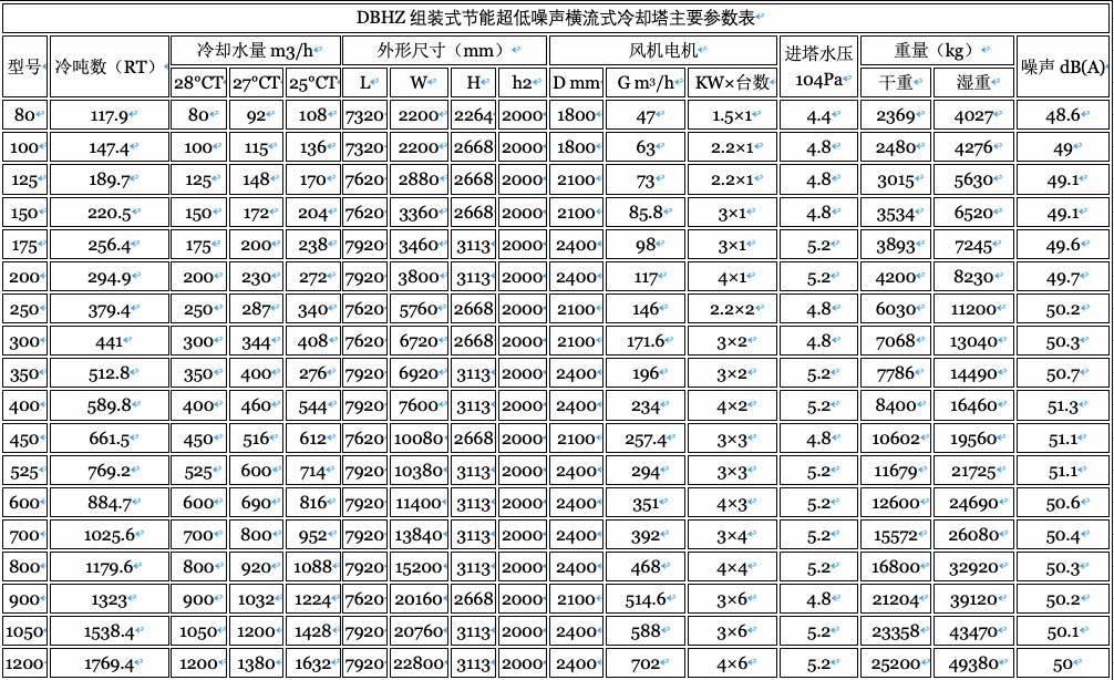 濕球溫度:τ =28℃(方形和普通型為27℃)