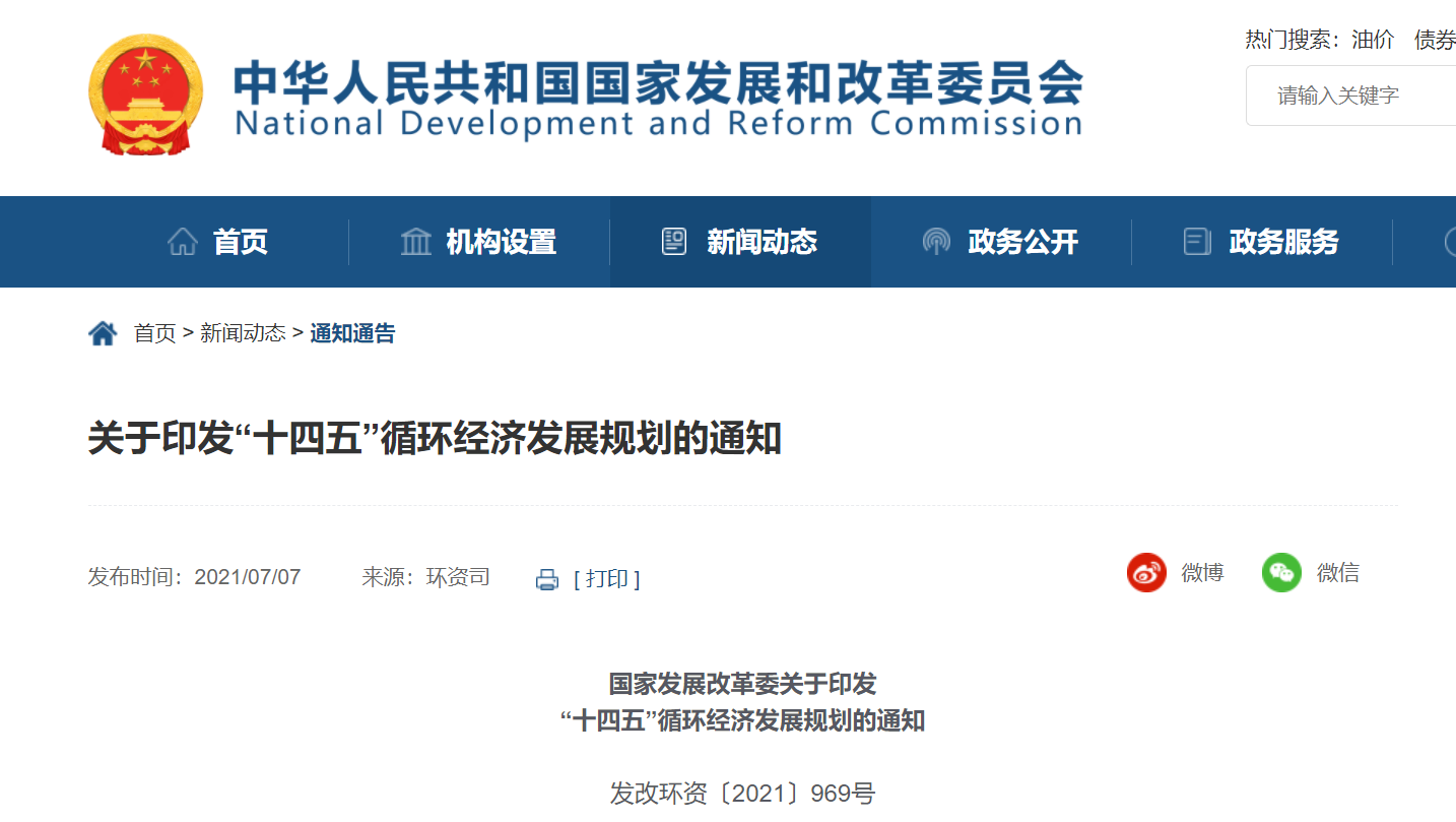 重磅!發改委印發《“十四五”循環經濟發展規劃》,圖解、全文、記者問答