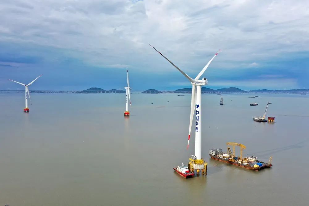 華電福清海壇海峽海上風電項目首臺海上風電主控系統國產化機組(右)