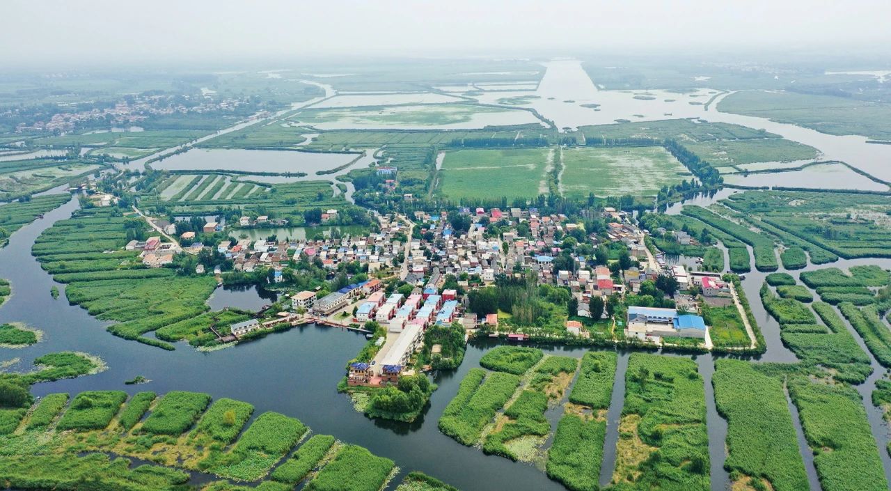 白洋淀是華北地區最大的濕地生態系統,曾因污水入淀及畜禽、水產養殖等諸多問題導致水質不斷惡化。雄安新區設立后,通過綜合治理,全面恢復白洋淀“華北之腎”功能,使“華北明珠”重放光彩。圖為白洋淀內的村莊(圖:新華社)