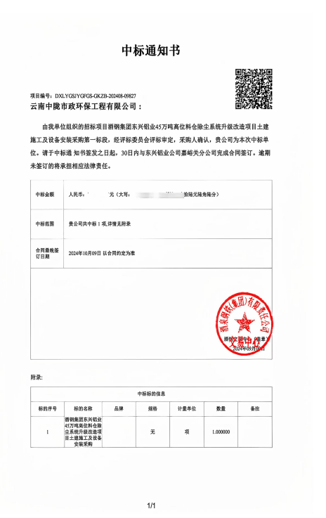 金秋送爽,丹桂飄香。在這個充滿收獲與希望的季節里,我們迎來了振奮人心的好消息——云南中隴市政環保工程有限公司成功中標酒鋼集團東興鋁業45萬噸高位料倉除塵系統升級改造項目土建施工及設備安裝采購第一標段!