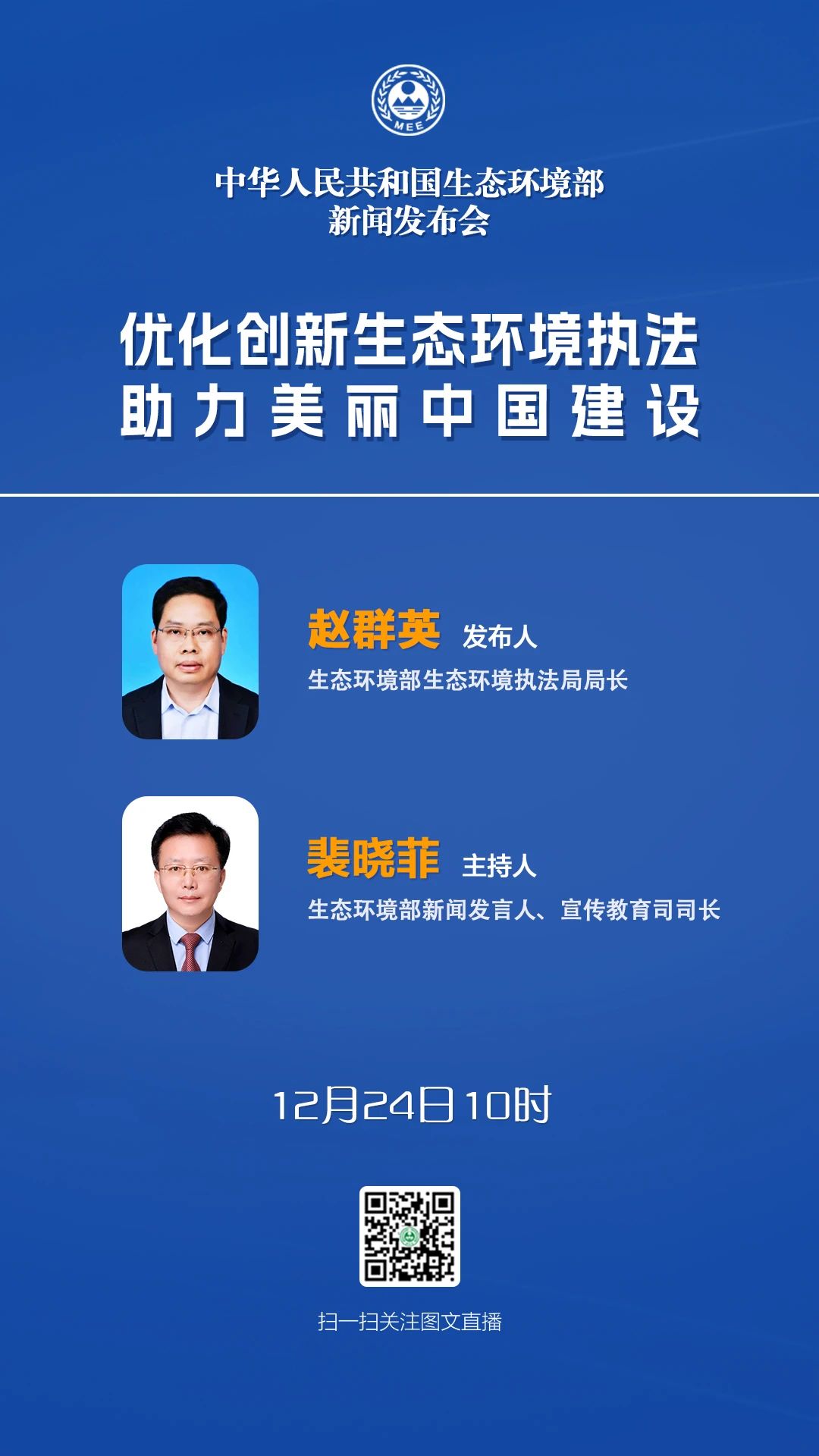 預告丨12月24日10時生態環境部將舉行例行新聞發布會
