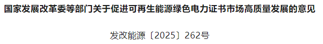 國家發展改革委等部門關于促進可再生能源綠色電力證書市場高質量發展的意見