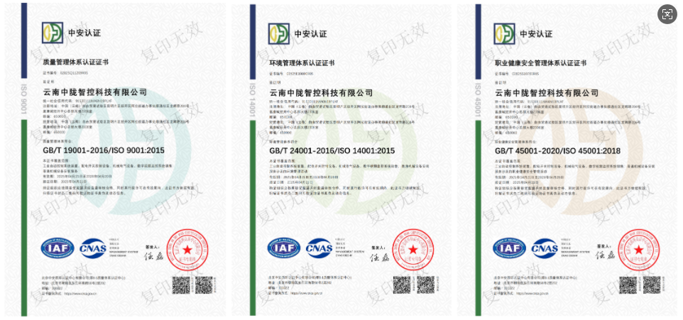 云南中隴智控科技有限公司此次雙認證的獲得,是其發展歷程中的重要里程碑。未來,中隴智控將以此次認證為契機,持續提升企業綜合實力,為客戶提供更優質的產品與服務,助力中隴環境在環保領域不斷開拓創新,為推動行業發展貢獻更大力量。