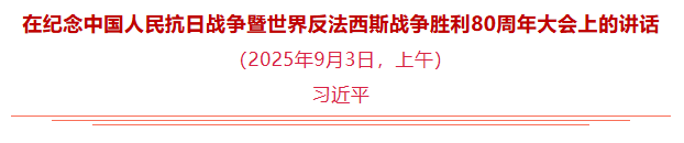 習近平:在紀念中國人民抗日戰爭暨世界反法西斯戰爭勝利80周年大會上的講話