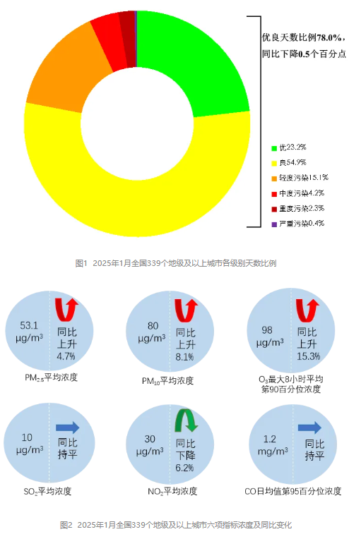 生態環境部公布2025年1月全國環境空氣質量狀況